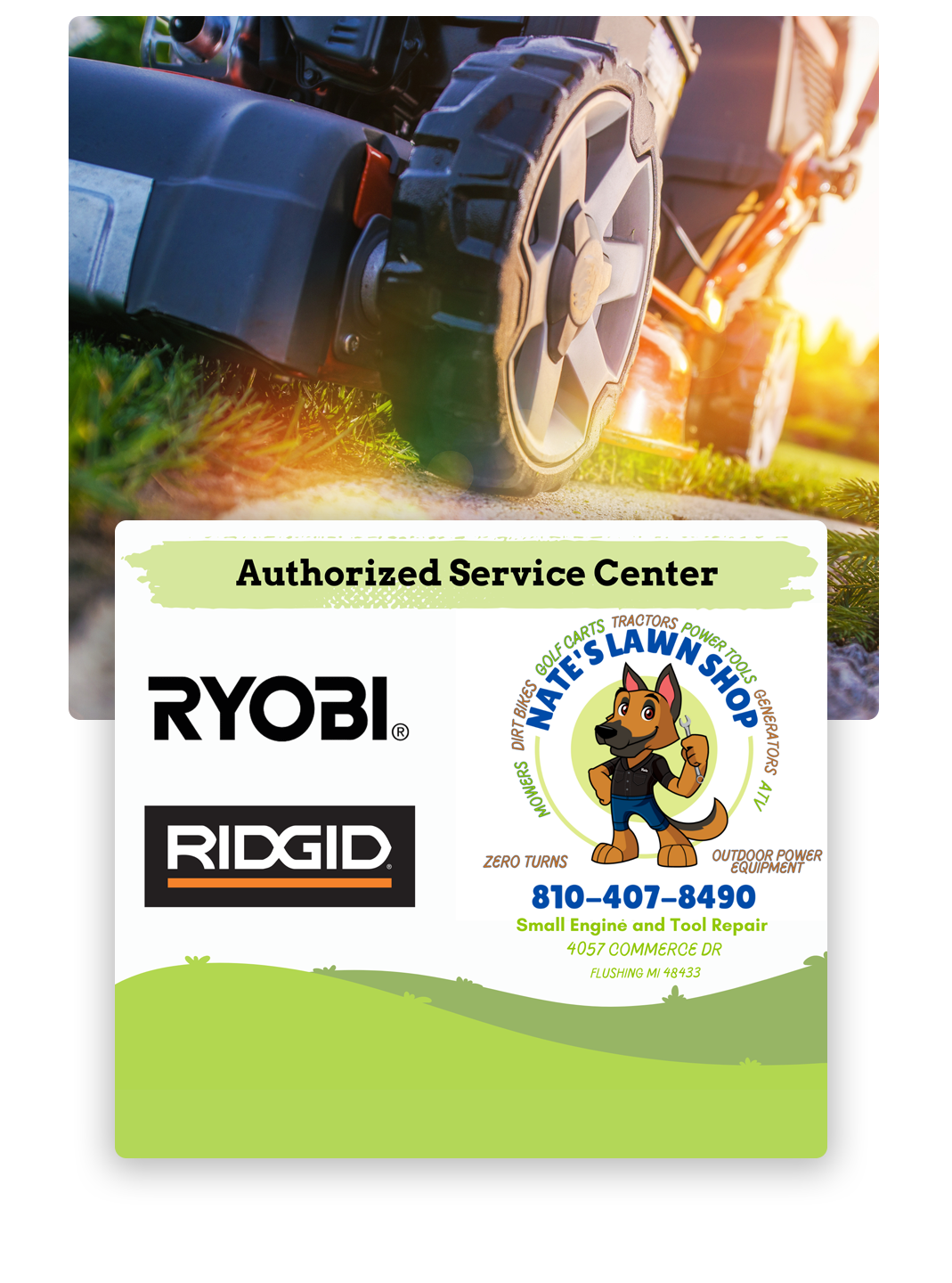 At Nate's Lawn Shop, we are your trusted destination for expert outdoor power equipment, small engine, and tool repair services. With a commitment to excellence and a passion for precision, we take pride in keeping your equipment running smoothly so you can tackle any task with confidence. As the premier destination for repair solutions in Michigan, Nate's Lawn Shop stands out as the only authorized service center in the state for Ridgid and Ryobi power tools and outdoor equipment.